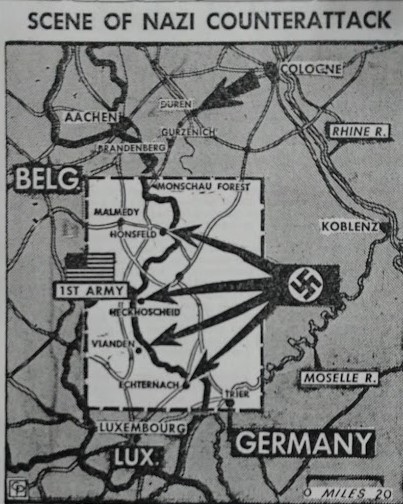 And then in mid-December – the Fuhrer struck back. The German Army opened a surprise attack in Belgium, which the Nazis called the Ardennes Offensive. Americans came to know it as “The Battle of the Bulge.” This battle would determine if the Allied progress across Western Europe in the second half of 1944 would be halted, split into pieces, or even turned back. The Nazis caught Americans by surprise, and it made residents in Gratiot County realize that this war could still have a different ending.