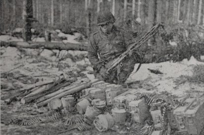 Private Martin Walker of Alma appeared in a picture of three men conducting reconnaissance patrol in the Philippines. Along with forty other men, Walker stormed a Japanese bivouac area and found 24 Japanese soldiers dead from artillery fire. Russell Augustine, also of St. Louis, served with the 37th Infantry Division in Manilla. He earned the Bronze Star for heroic achievement during the battle on Luzon. Out in the Netherlands East Indies, Private John Cresswell from the 13th AAF was marooned on a tiny island. Cresswell, a radio operator, was stranded with three other men because of a hurricane. All of the men were reported to be in good condition. Robert L. Brown of Ithaca got the Bronze Medal for heroic achievement in Germany in late November. Brown helped to administer aid and remove wounded men while under fire.