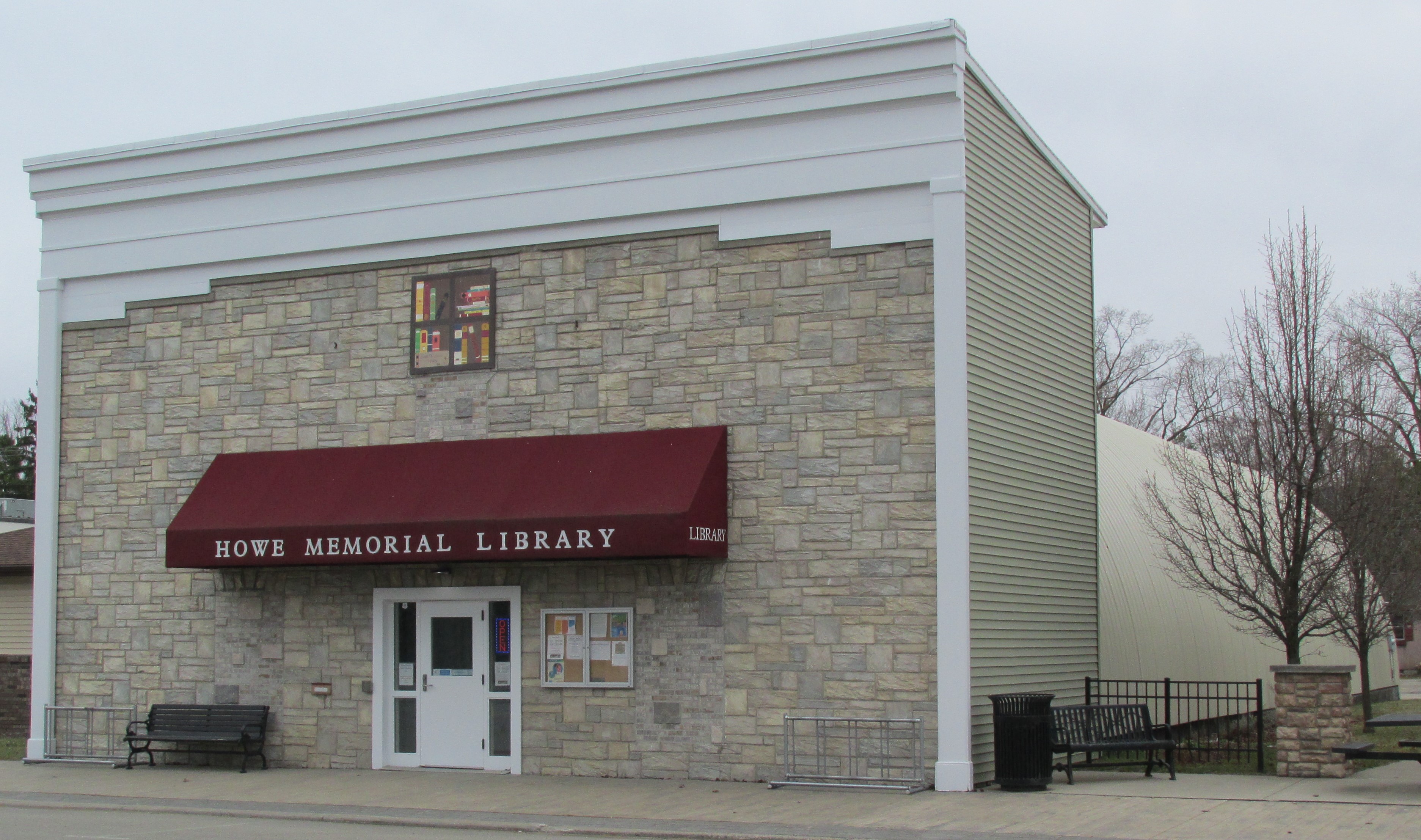 Above, clockwise from upper left: The Gratiot Theatre debuts in 1948; Fourteen cents Wednesday movie nights; Howe Memorial Library, the former theater; 1948 Opening Headline; Earl Peterson plays at the Gratiot, 1950s; the front door as it looks today.