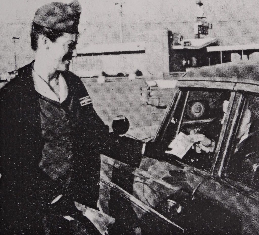 Station attendant Doris Parks helps a driver in 1967. Drivers could stop at Michigan Outdoors Center for coffee, directions, maps and just a break.