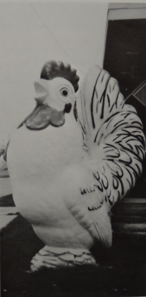 The Nakos created a well-known mascot in St. Louis when Joe purchased and placed “The Chicken” out front of the Dandy. The fiberglass chicken was a mainstay in St. Louis for decades – “Just look for the chicken” was the famous saying about how to find the Dandy. It is unclear where the Nakos got the chicken, but one story illustrates how well-known the bird was. In one instance, it was reported that a group of boys from a Saginaw high school made off with the fowl as a prank. Fortunately, Joe Nako was able to get the chicken back. This time, Joe cemented the chicken firmly into the ground so that it would never be able to fly away again.