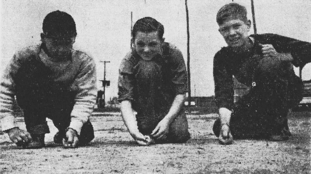 One of the other goals of the WPA programs was to provide recreational activities for youth. At least four locations in Alma (Civic Recreational Center, Wright Park, Washington School Center, Salvation Army Center) offered afternoon and evening activities to the public. The WPA Recreation Department also provided a marble tournament to engage youth across Gratiot County. Three district tournaments in Alma, Ithaca, and St. Louis occurred for youths aged fourteen and younger. The Marble King Tournament, sponsored by the NYA and the Gratiot County Herald, drew fifty-nine boys in the semi-finals, which took place over ten days of action in the three districts. The finals took place at Washington School in Alma, and lunch was offered to all boys during a mid-day break, courtesy of the Alma Chamber of Commerce. Glen Strouse and Oran Sebring of St. Louis took first and second place, and St. Louis Junior High School received the king trophy.