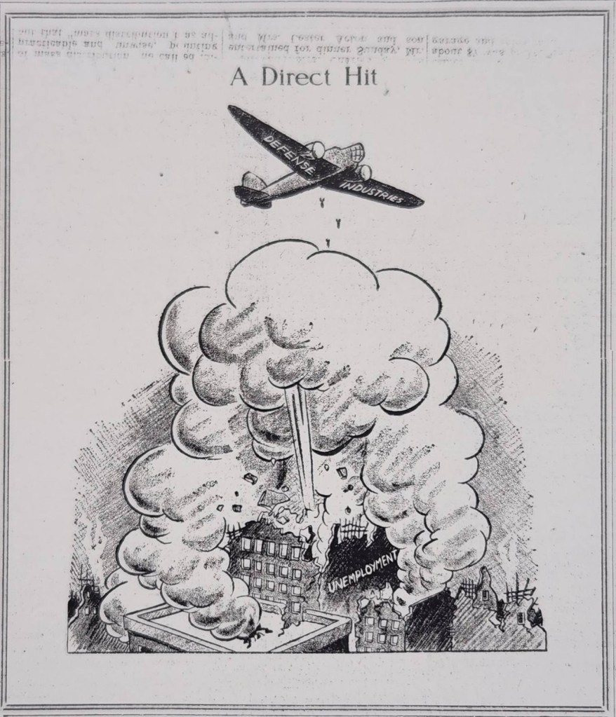 Job opportunities seemed to accompany the rumblings of war. At least ten types of openings appeared at the State Employment District Office in Alma’s city hall. Jobs such as sewing machine operators and automatic screw machine operators were needed. W.N. Irish, manager of the Alma office, said that a statewide drive to find workers for national defense jobs was now in effect, and workers were needed.