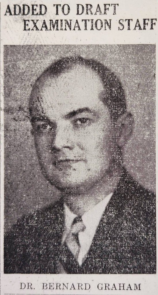 Not very long after this group left Alma, the draft board announced that April’s call for men would rise to 49 and that the group would leave for Detroit on March 31. In order to help with the growing number of draftees in Alma, Dr. Bernard Graham was added to the draft medical examining board, along with Dr. John Rottschafer.