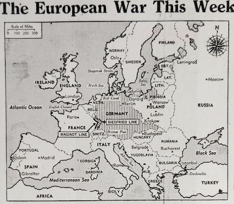 The war situation was the start of Hitler’s “phony war” and encompassed the next eight months in Europe. As Western countries like France and England anticipated a Nazi move west, both sides prepared for a deeper conflict. Names like “Siegfried Line,” “Maginot Line,” and “Armistice Front” became a part of the newspaper’s coverage to educate the American public about what was happening with Nazi Germany.