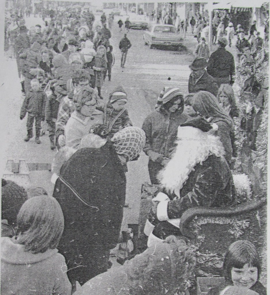 However Santa arrived in Ithaca, it seemed that the children in town kept turning out in larger numbers. By the end of the 1960s, well over 1,000 children turned out to greet Santa on his first trip to town. It now became common to see lines of children measuring over two blocks long, each with their desire to tell Santa what they hoped he would bring them for Christmas.