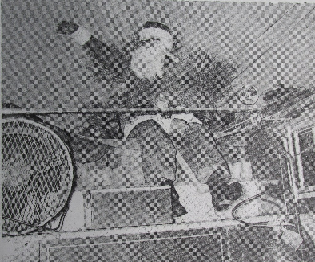Starting in 1949, Santa appeared in Ithaca each Saturday in December. To prepare for his arrival on that first Saturday, he sent a telegram from his workshop to the Gratiot County Herald announcing his arrival time. This year Santa flew in a plane over Ithaca and then came into town via taxi after landing at the airport. It was also the first Christmas in Ithaca where new plastic street decorations appeared upon all the downtown light posts.